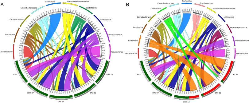 Além disso, bactérias como Bacteroides e Fusobacterium, também identificadas em grandes quantidades nas amostras armazenadas a 15°C, são indicadores claros de deterioração avançada. Isso demonstra que a temperatura inadequada cria um ambiente propício para o desenvolvimento de microrganismos indesejados que, em última instância, afetam tanto a qualidade quanto a segurança do produto final.